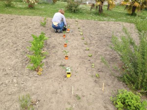 Fixade i trädgården på eftermiddagen. Klippte lite gräs. Planterade tomater, sallad och paprika.