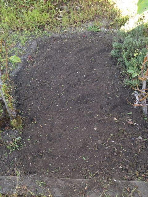 Tagit bort brännässlor, klippt gräs, tagit bort ogräs i rabatterna. Före: