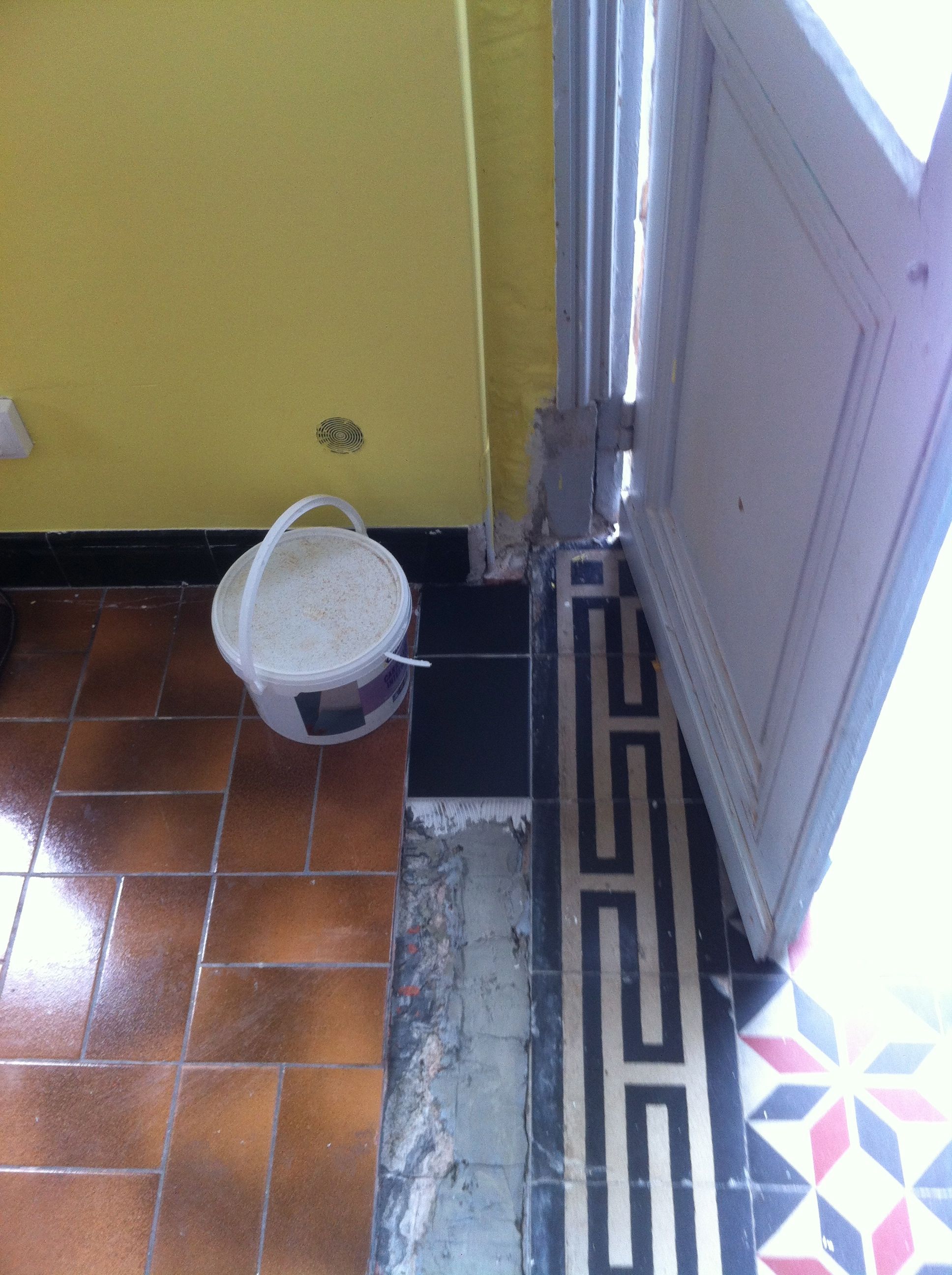 You are here: Home › 2012-07 › 9 juli 9 juli Gjorde en utflykt till Médoc. Fixade lite med golvet i köket. Fyllde igen med cement och testade att lägga dit ett par klinkerplattor.
