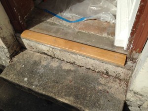 Satt dit tröskeln vid gamla ingången. Får se om man kanske måste måla den sedan. Nu är den bara oljad. Klimatet är rätt tufft under höst och vinter.