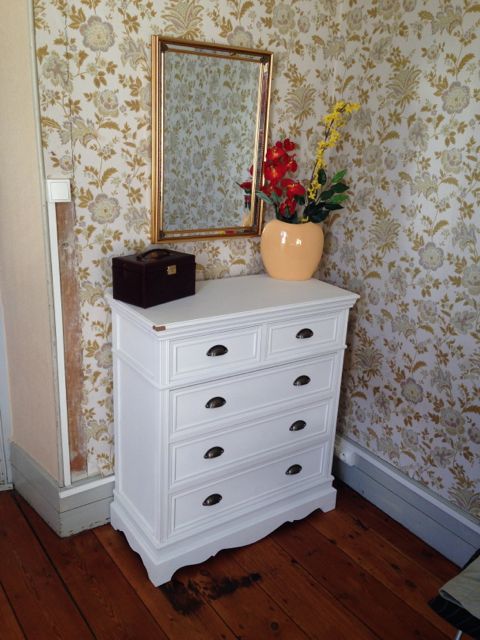 Så här ser byrån ut som vi köpte i torsdags. Lite lätt skadad i hörnet och därför 50% rabatt.
