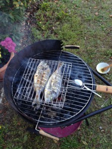 Grillade guldbraxen (dorade) till middag och käkade haricots verts som Georges skördat i landet på eftermiddagen.