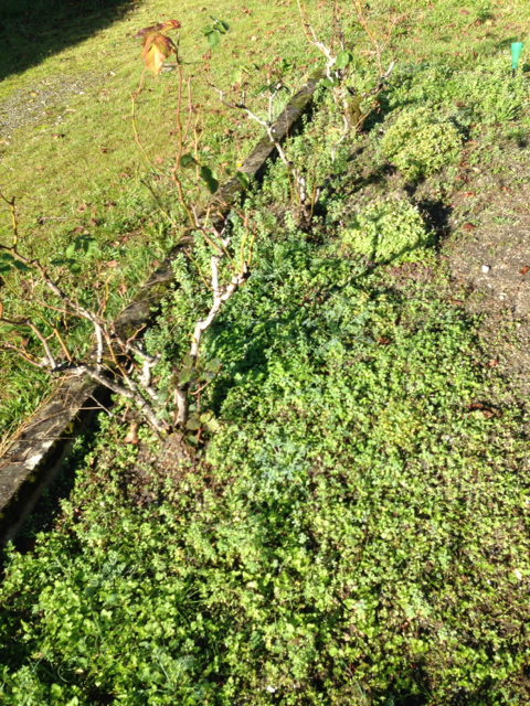 Har rensat ogräs i rabatten och börjat ta bort ett björnbärssnår vid uthusen. Trots att jag rensade allt ogräs i augusti såg det ut som en gräsmatta igen i rabatten.