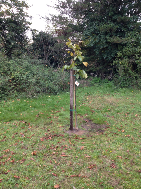 Köpte ett valnötsträd som är lite större än det vi fick från förre ägarens dotter. Det har ju inte växt speciellt mycket så vi har väl tappat tron på det lite grann.