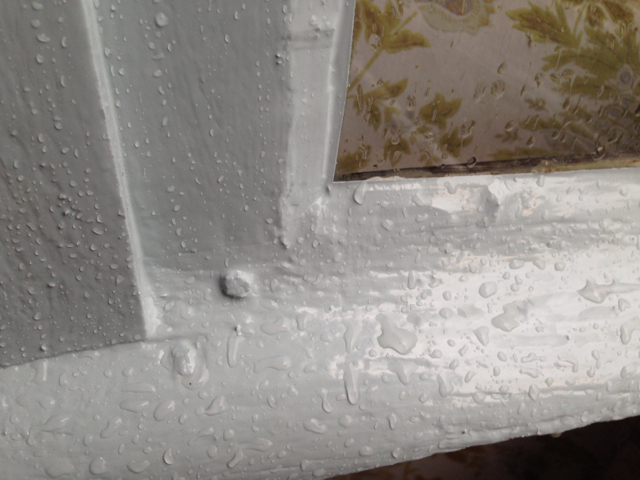 Vårt nymålade sovrumsfönster står emot regn som det ska. Sjyssta droppar som bara rinner av ytan som vatten på en gås.
