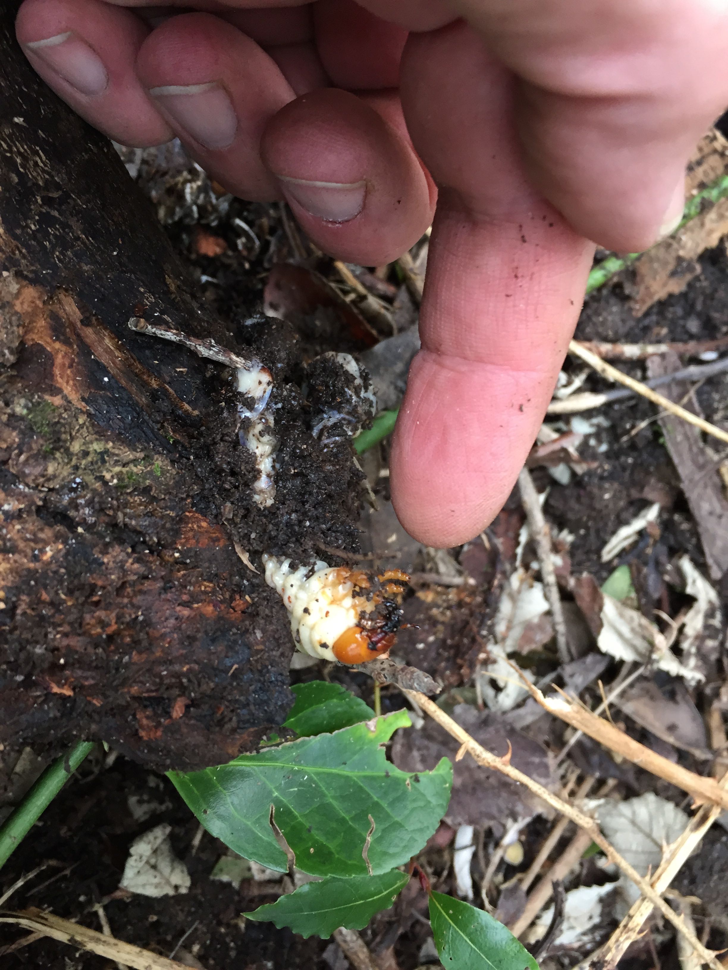 På eftermiddagen har vi shoppat lite i byn och jag har rensat brännässlor och sågat ner ett murket träd som riskerade falla in på grannens tomt. Det var fina tjocka vita maskar i det trädet: