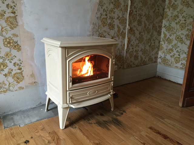 Kaminen var lite svårstartad. Kanske var veden fuktig? Den har ju legat i uthuset hur länge som helst men frågan är om den torkar där?