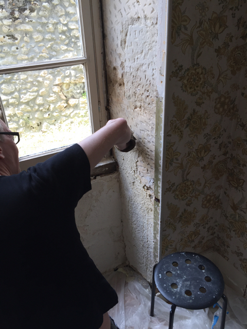 Började sedan med ett av fönstrena i sovrummen på ovanvåningen. Lyckades tyvärr knäcka en ruta.