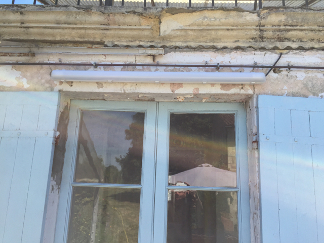 Målade ytterdörren en gång till. Skrapat lite färg på fönstret. Handlat på marknaden.