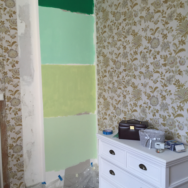 Rensat brännässlor på eftermiddagen. Även provmålat lite kulörer i sovrummet. Översta (knappt synliga mörkgröna) och understa är nya.