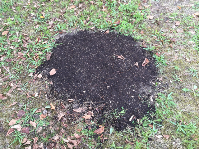 Tagit bort (hoppas jag) ett myrbo i gräsmattan och lagt på ny jord och sått nytt gräs.