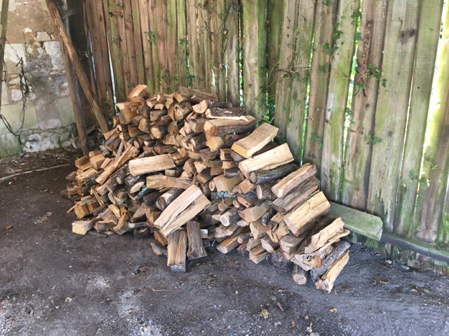Fick vår vedleverans idag. En kubik ek-ved 40 cm långa, 65€.