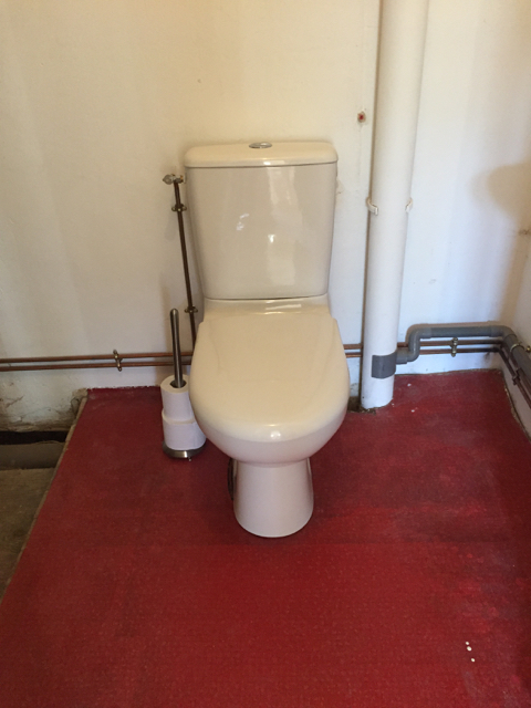 Rörmokaren Albert kom strax efter åtta på morgonen. Vi gick genom arbetet som skulle göras. Sedan höll de på fram till strax efter tre. Gick väl hyfsat smidigt. Vi hade vattnet och en ny toa tillbaka igen vid 12-tiden. Men efter att de hade gått så ville inte toa sluta spola. Så jag gick bort till Albert och klagade. Efter någon timme kom de tillbaka hit och fixade flottören som tydligen hade fått något skräp i mekanismen.