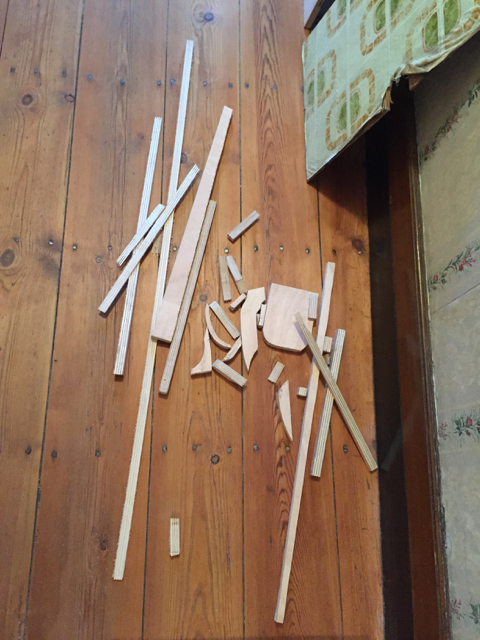 Och alla fyra skivorna på plats. Dock inte fastskruvade än. Innan dess ska dörren ut mot balkongen sågas av längst ner (annars går ju inte dörren öppna) och en lite provisorisk tröskel måste fixas . Dörren går inåt.