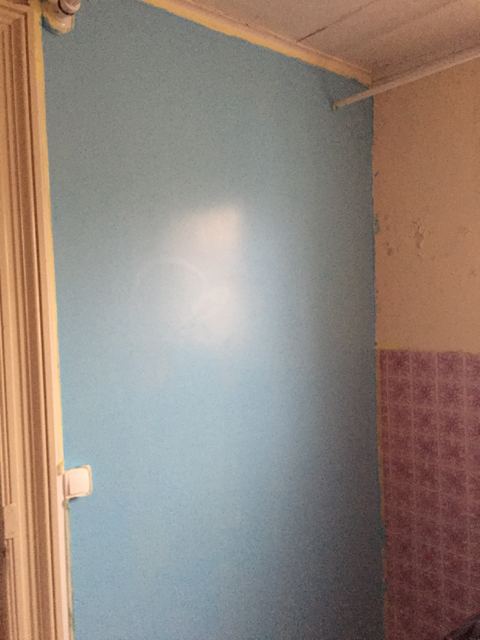 L har fortsatt med målning i badrummet på bottenvåningen. Maldiverna-blå heter färgen. Är blåare i verkligheten jämfört med den här bilden.