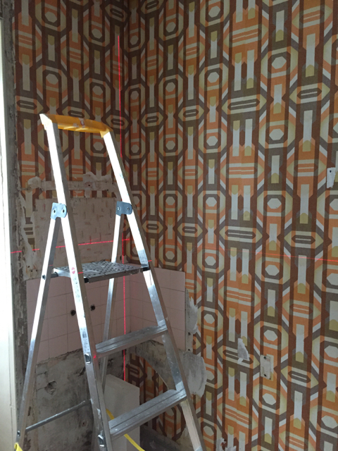 Jag har äntligen kommit igång lite med badrummet på ovanvåningen. Lasermätning för att få lodräta väggar.