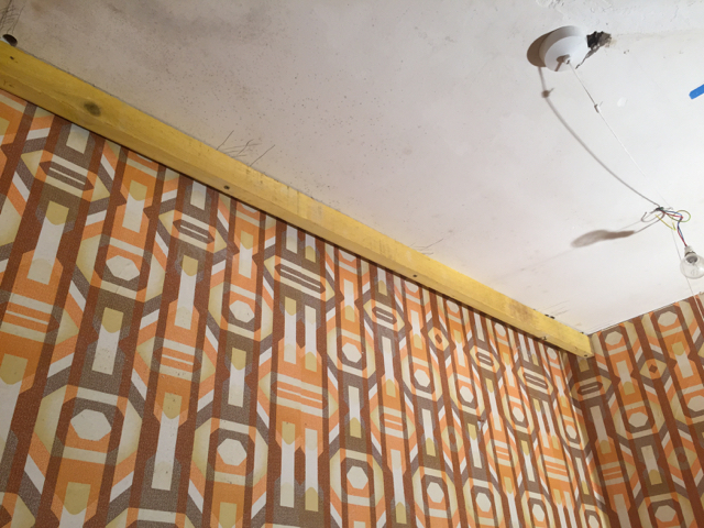 Och en regel nästan på plats. Taket är dock inte jämnt (buktar ner i mitten) varför jag måste lägga in passbitar på sidorna av regeln.