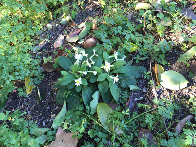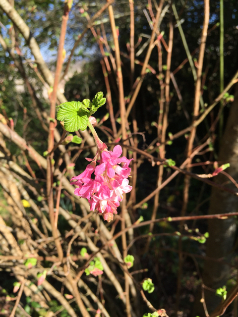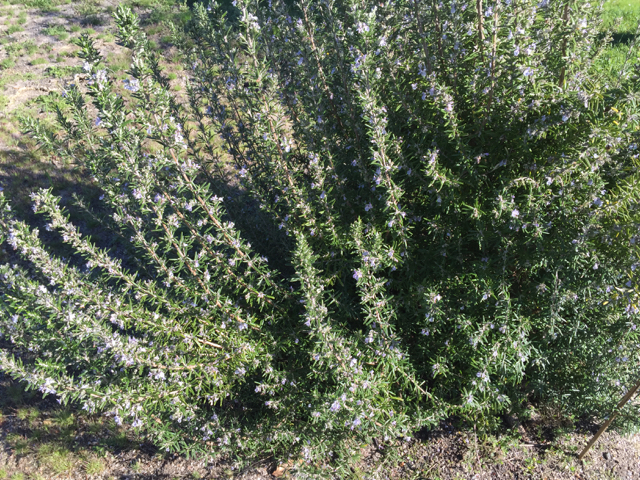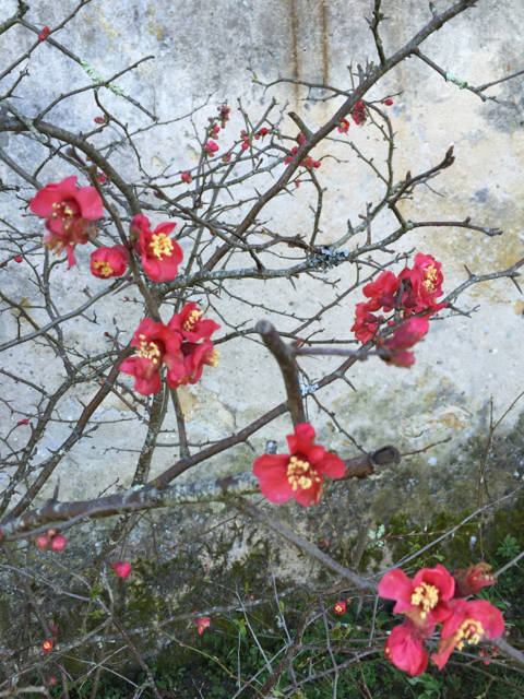 En del blommor, någon rosa sak, små vita blommor, kvittenbusken och rosmarinen.