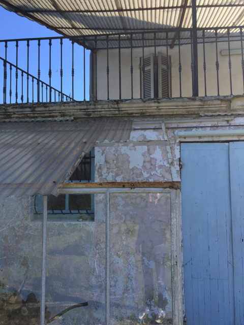 8 grader men sol. Lilla taket utanför badrummet har blåst sönder under vinterns stormar.