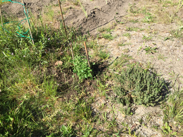 Och satt ner en gammal Ica-oregano som vi tog med från Sverige. Mellan dragon och timjan.