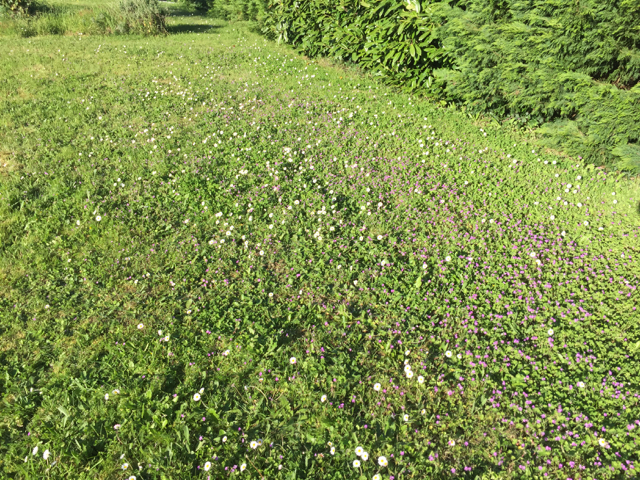 Många blommor i gräsmattan. Klippte inte alla delar för att spara lite blomster.