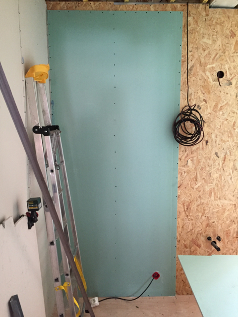 Jag satte upp lite fler gipsskivor och fixade med eluttagen.