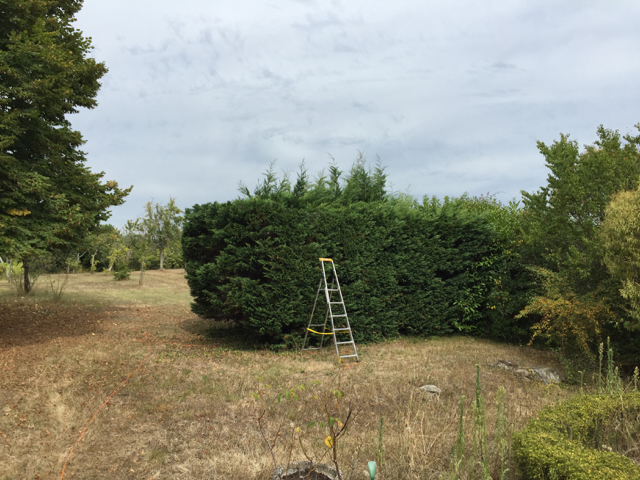 Jag har klippt lite på vänstra delen av tujahäcken och rensat lite björnbärssnår.