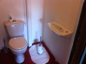 Så köpte vi ett handfat till toa på bottenvåning som jag nu skruvat upp. Får väl se hur länge det sitter 😉 Och om väggen följer med ner den dagen det faller ner.