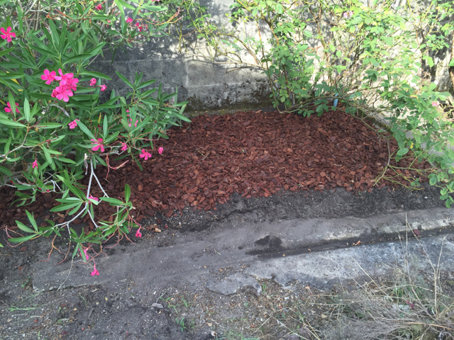 L har fortsatt ogräsjakten i trädgården. Lagt på ”träflis” för att stoppa ogräs mm.
