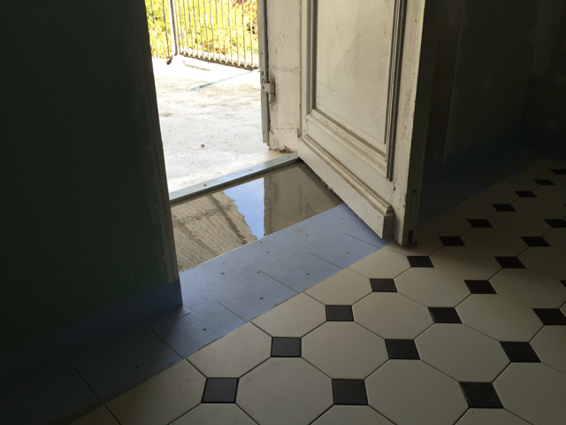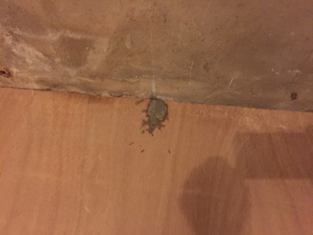 Det var väl inte helt tätt vid kanterna där jag hällde på flytspacklet visade det sig sen. En del hade runnit ner på golvet i toan.