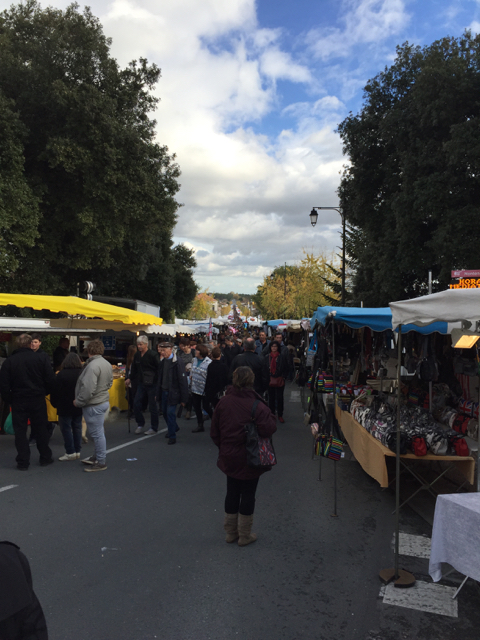 Gick på den stora marknaden (Foire Saint Martin eller Foire d’Ail) både före lunch och efter lunch. Så här såg gatan som leder bort mot järnvägsstationen ut.