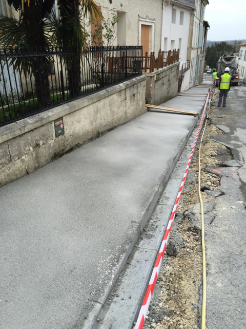 Väl framme vid huset höll de på att gjuta ny trottoar.
