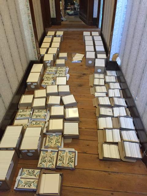 Man ska ju inte ta alla kakelplattor från samma låda (för att undvika problem med eventuella nyansskillnader) så jag la upp alla kartonger så man lätt kan plocka lite slumpmässigt.