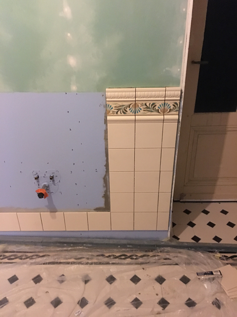 Och kaklade två rader (kolumner?) till på handfatsväggen.