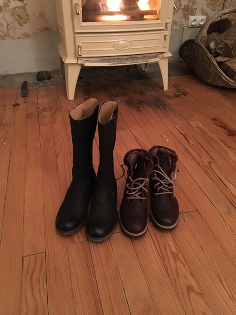 Tog en shoppingrunda i byn på eftermiddagen. Skoaffären på vänstersidan på väg upp mot torget har gått i konkurs och hade utförsäljning. L köpte 2 par skor (1 par gratis).
