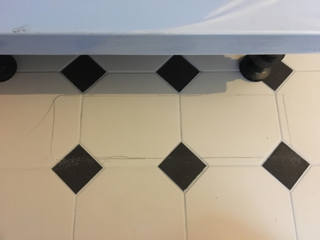 Testade att nåta golvet med nya, mörkare nåtningsmassan.