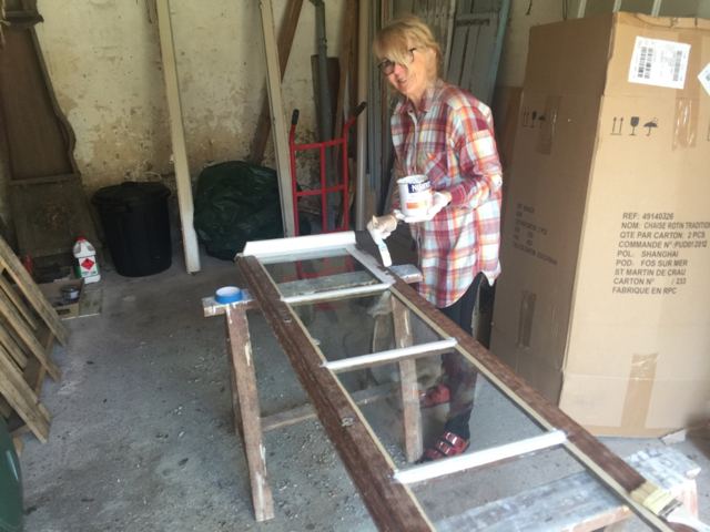 Peter har klippt gräset. Annchis har grundmålat ett fönster i franska rummet.