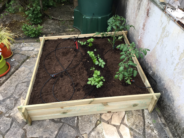 Sedan liten miniutflykt till vinbutiken i Tutiac och så beställde vi takjobbet hos Albert och handlade plantor till lådan. Två tomatplantor, tre stjälselleri, några schallotenlökar och så ska vi så rädisor.