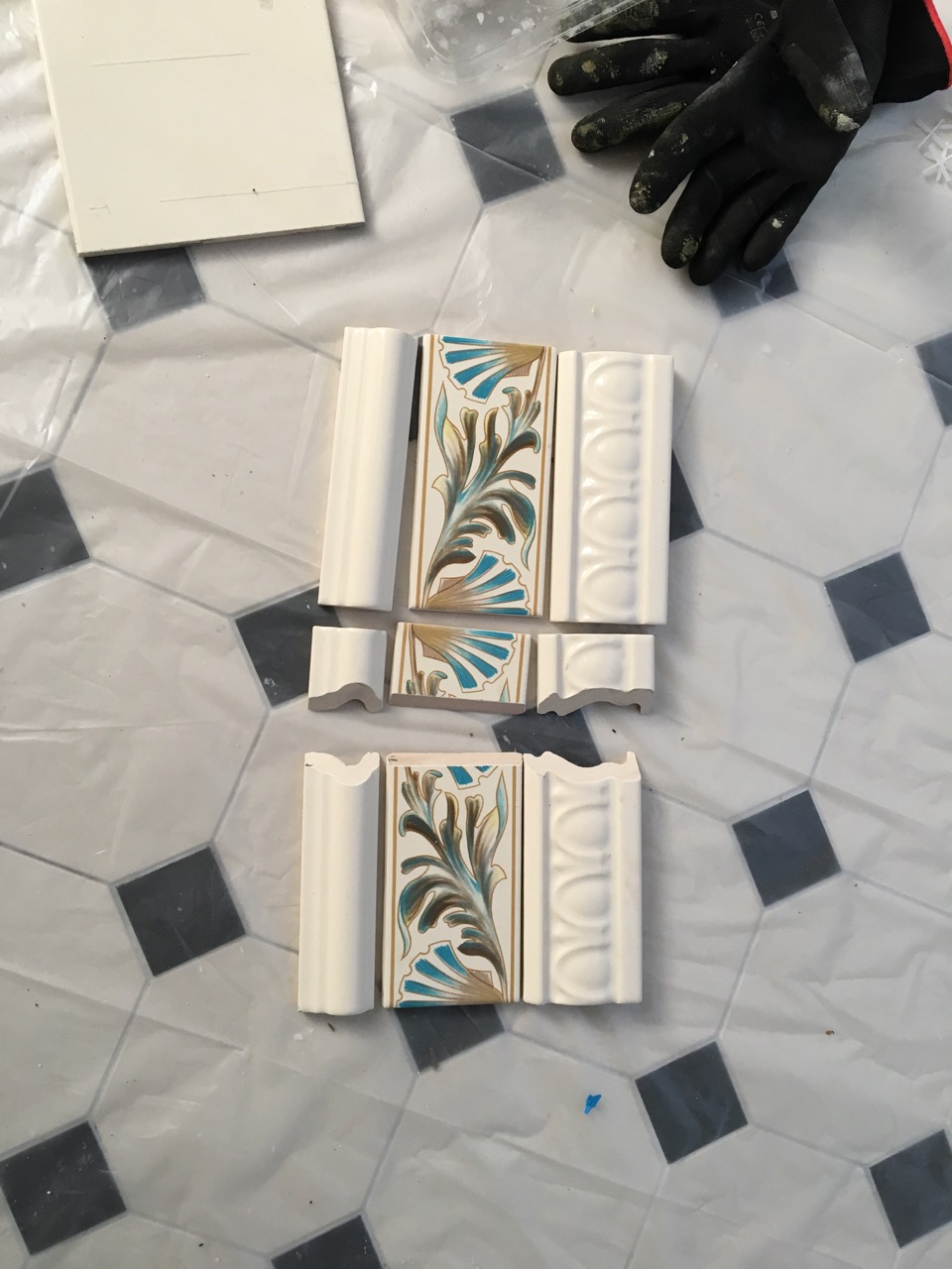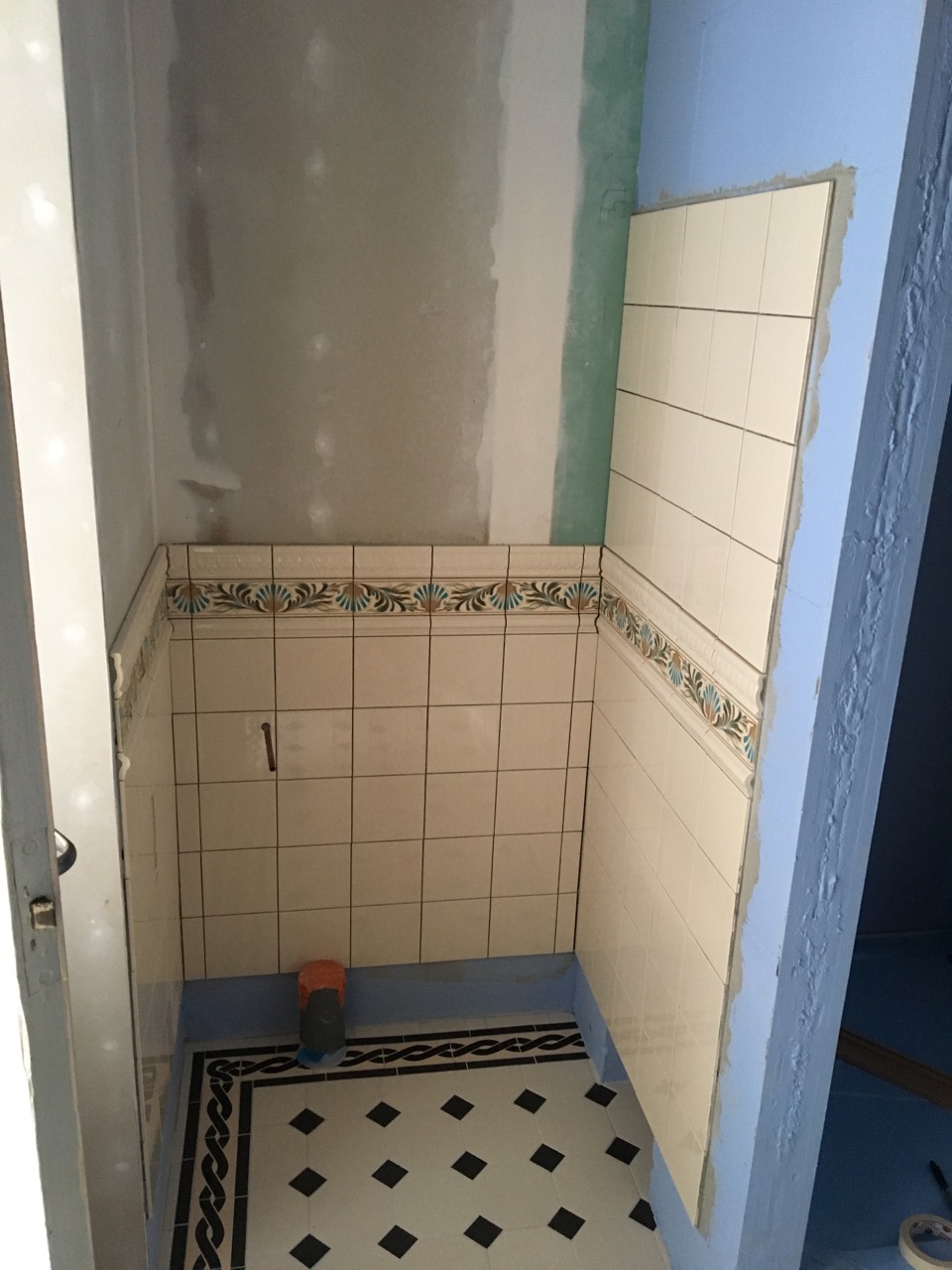 Och så kakling. Först gerade ”fris”-plattor. Sedan slutresultatet för dagen.