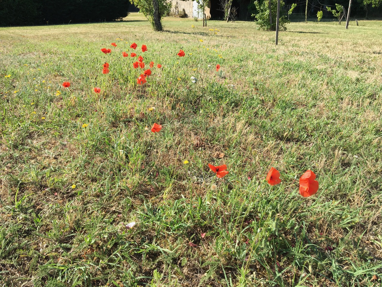 Klippt sista delen av gräsmattan på morgonen. Kunde inte med att klippa bort vallmon däremot.
