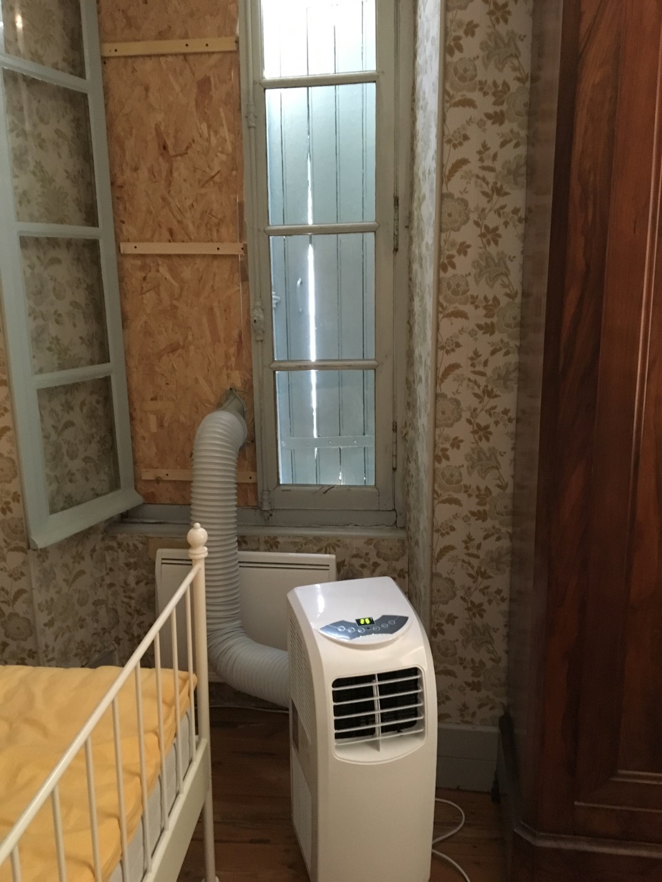 Köpte en liten luftkonditionering på Bricon. Vaknade i natt för att det var så varmt. Får se om det kan bli bättre nu. En snabbt ihopsnickrad skiva för utloppsröret. Jag hade ingen skiva som var tillräckligt bred så det blev till att skarva…