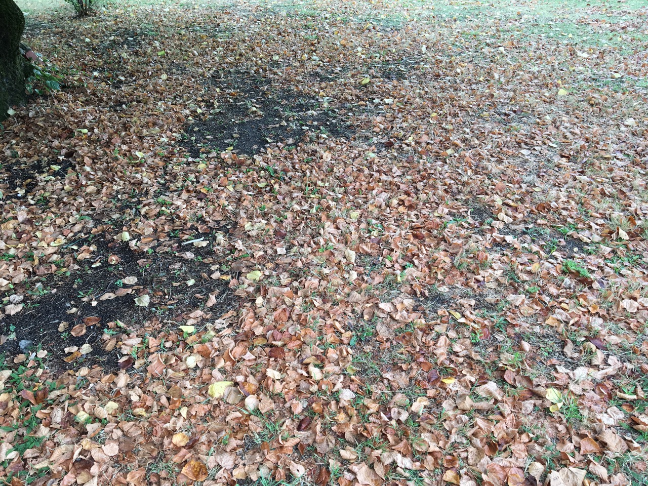 Många torra löv under linden.