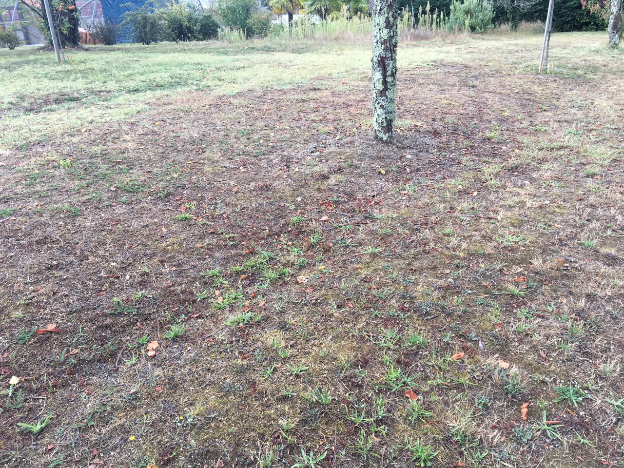 Gräset är dock en sorglig historia. På vissa delar är det bara som någon slags lav kvar och helt brunt.