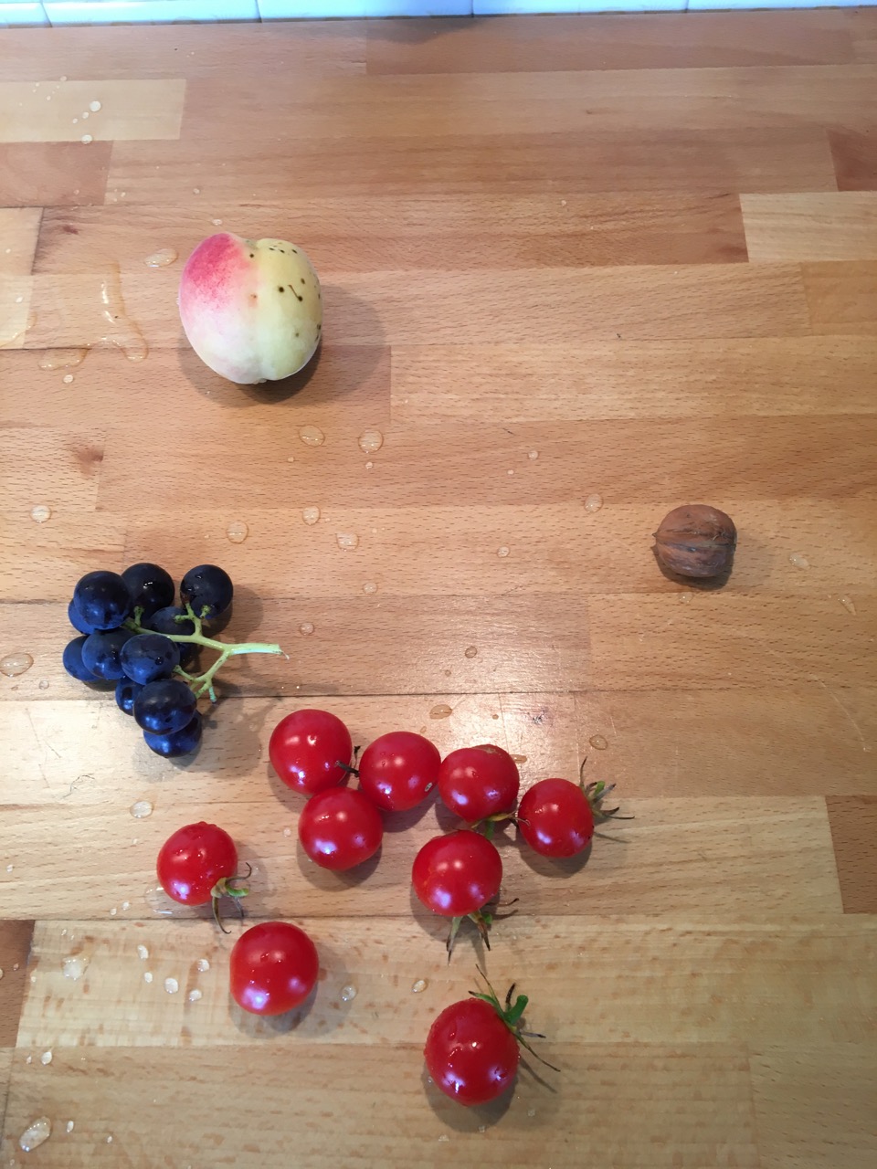 Lite spridda skördar. En valnöt hade börjat spricka och då är det ju dags att plocka dem.