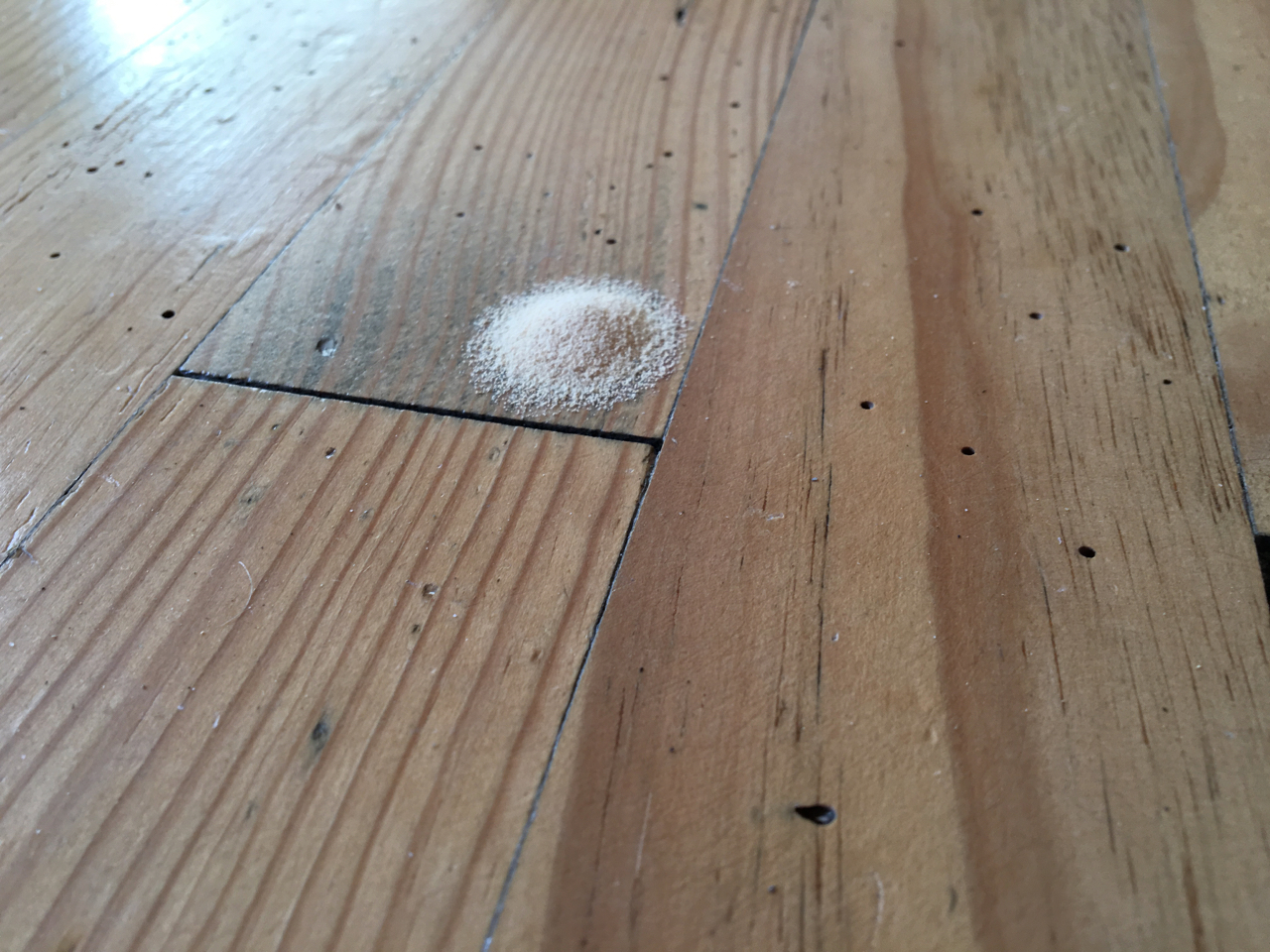 Inne hade en trämask haft stor fest i matrummet.