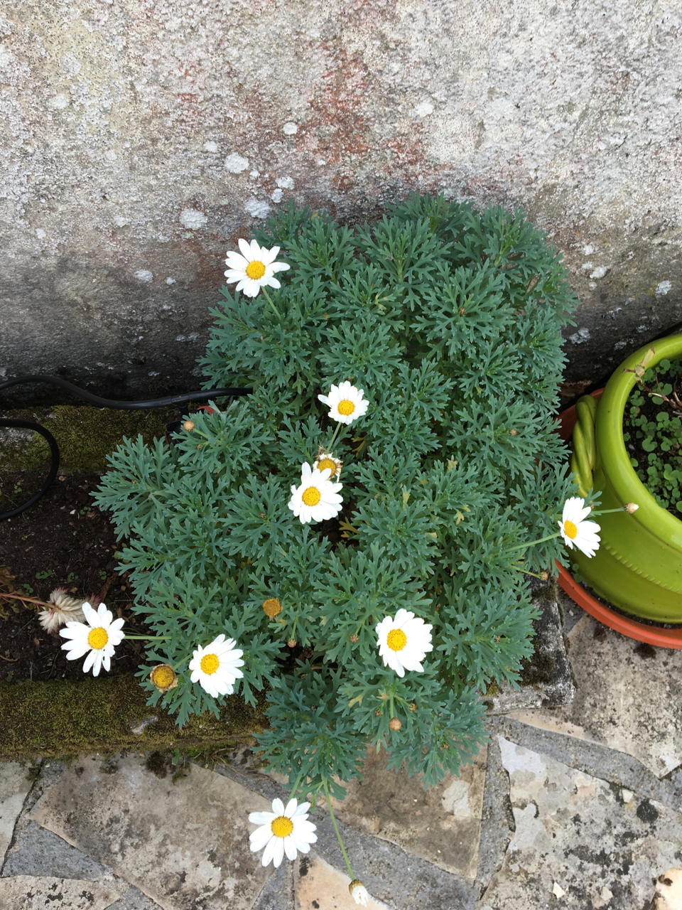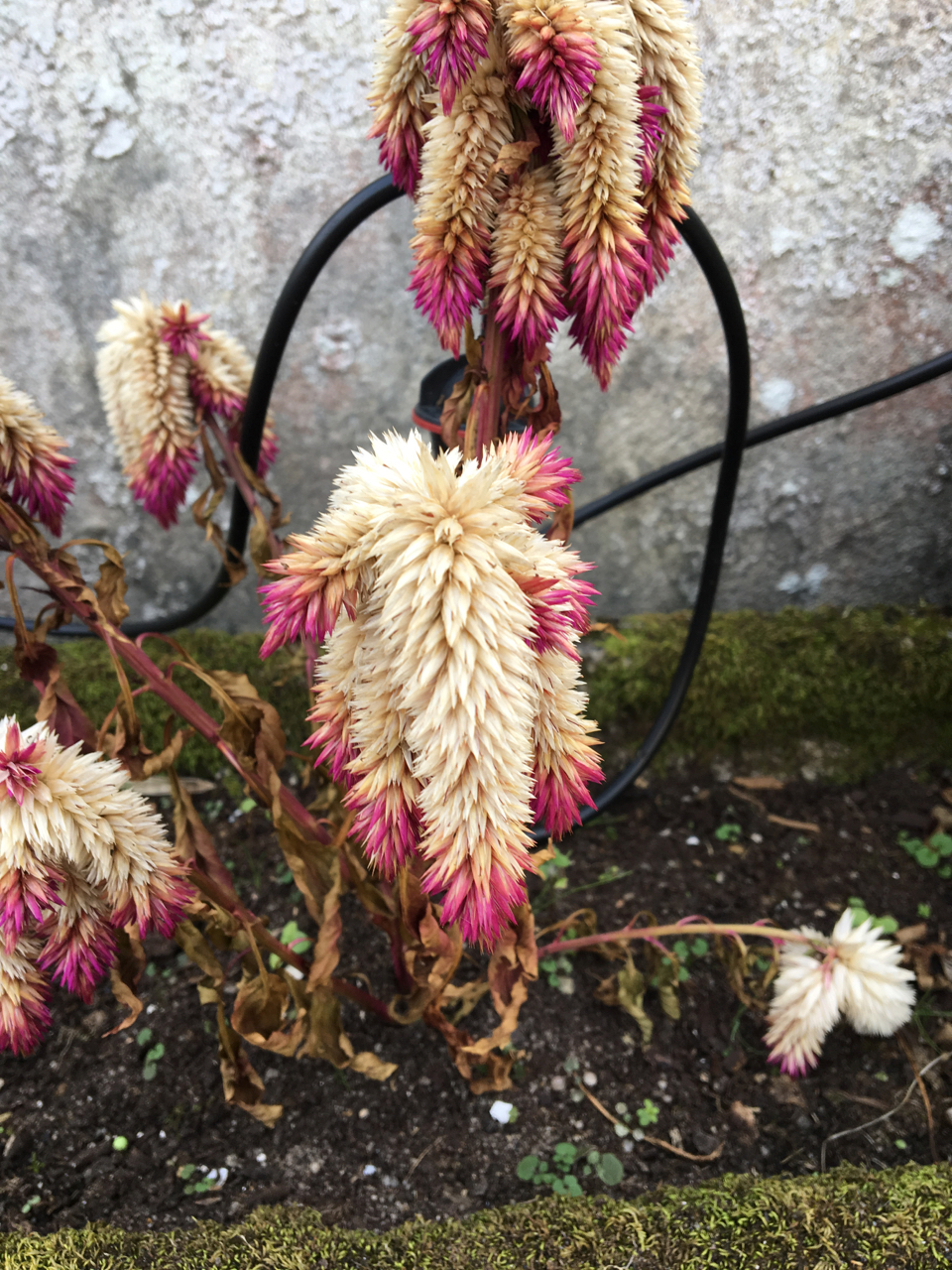 En del blommor kämpar på. De små bruna stumparna i rabatten vi såg i somras (och som inte ens hade några blad då) blommar nu på hösten.