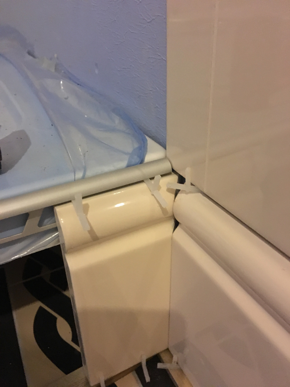 Funderat lite mer på sockel – duschkar. Kommer höja duschkaret lite för att få plats med en kvartsstav (aluminium). Så blir det silikon mellan kvartsstav och duschkar och fog mellan kvartsstav och sockel. Socklarna är inte 100% glaserade på ovansidan, så därför behövs en list där.