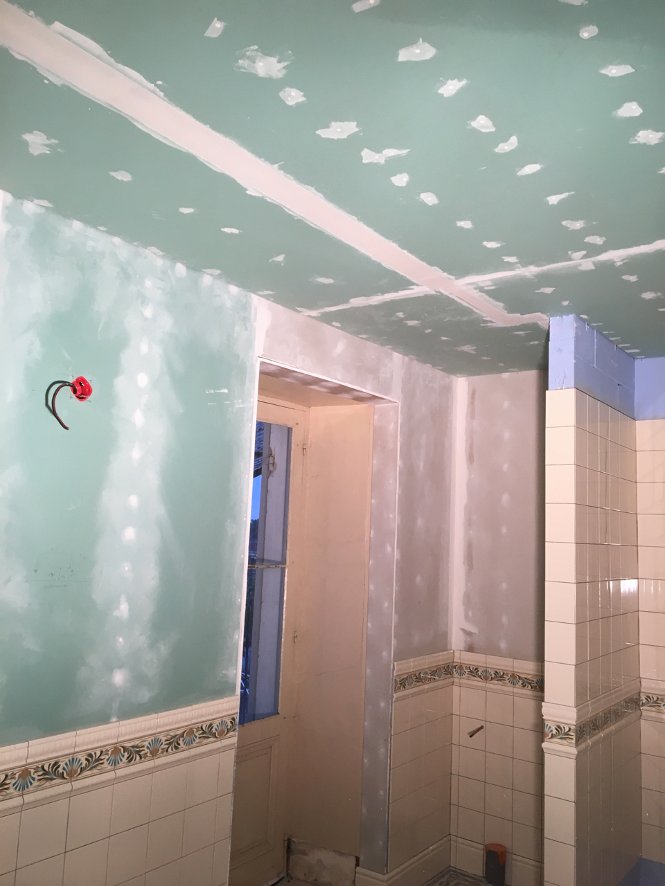 Satte upp de två kvarvarande gipsskivorna i taket och spacklade allt.
