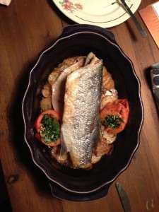Handlade fisk och skaldjur på marknaden igår. Blev ”Bar á la monégasque”.