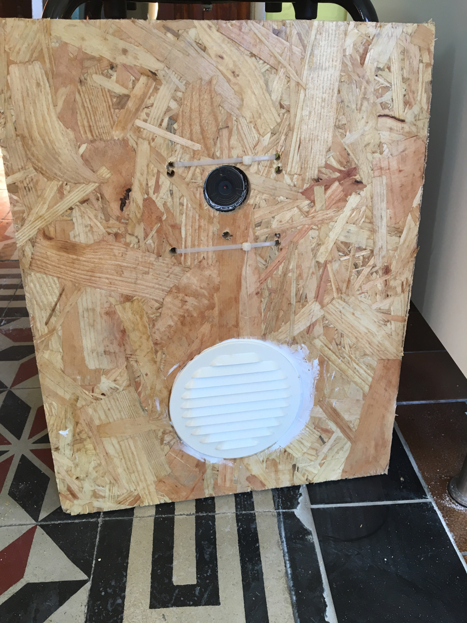 Har fixat en ny skiva till vindsöppningen där både kamera och fläktutlopp ska få plats.